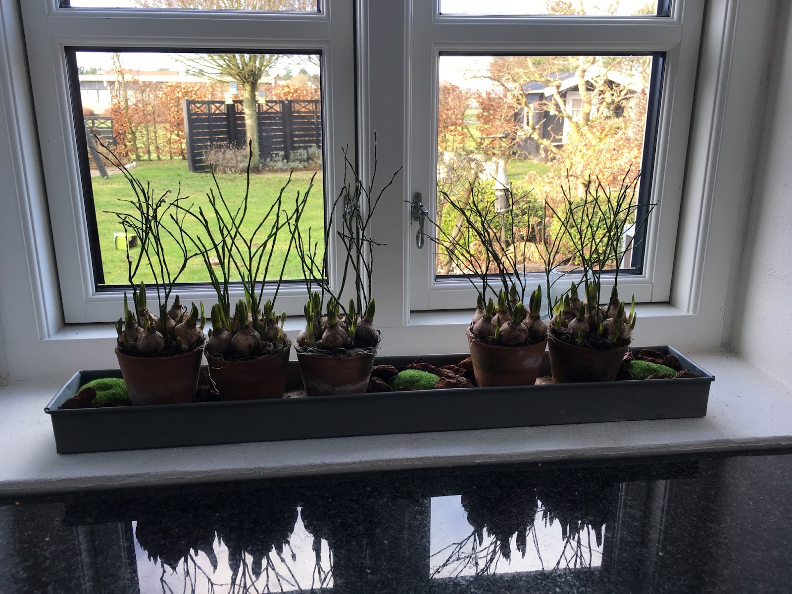 Forår er kommet til Gyldenlund 18 og jeg nyder at pynte op med løgplanter.